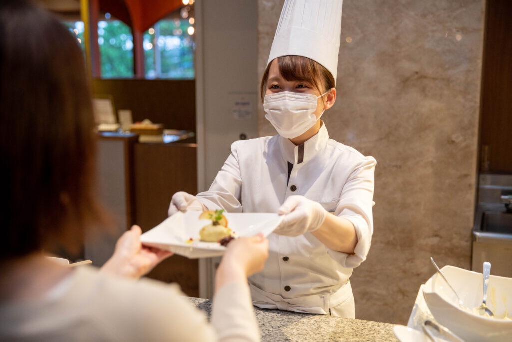 お食事は、料理人が目の前でできたての“ひとさら”をつくるオーダービュッフェ。
